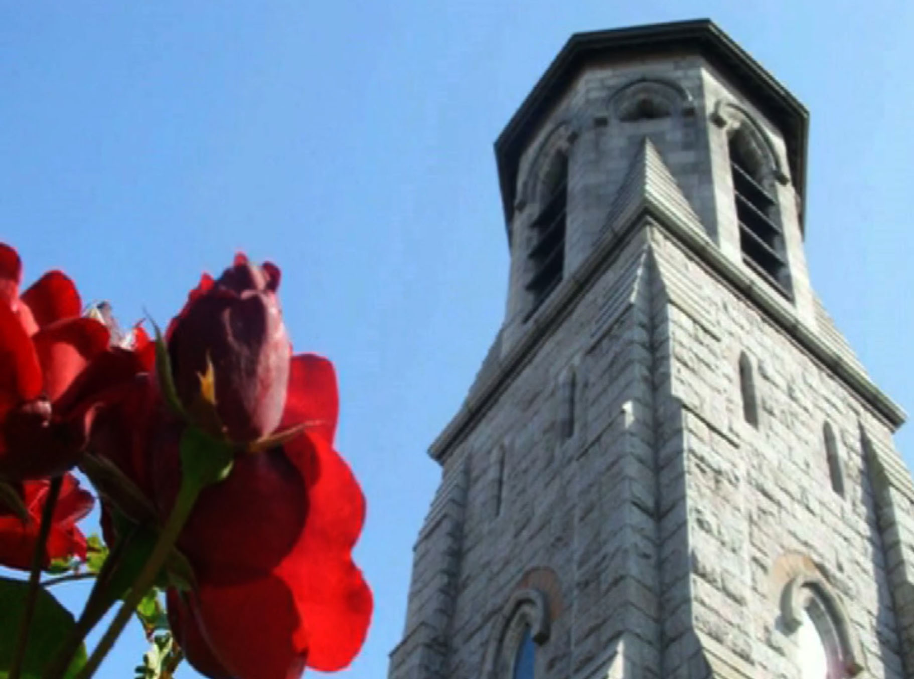 • Bell tower and red roses